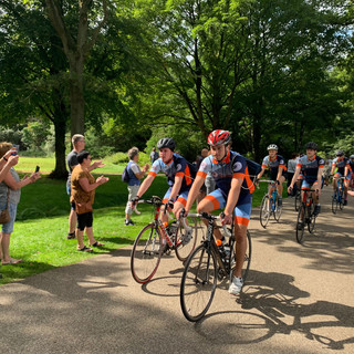 Toen we eenmaal het terrein van Kamp Westerbork op reden zorgde we ervoor dat we 2 aan 2 fietste en een nette ruimte tussen ons in. Er stonden heel wat mensen op het einde van de straat ons op te wachten. Dit was zo'n kippenvel moment. Hier fiets je 2 weken naar toe en dan rol je uiteindelijk de finish over. GEWELDIG!